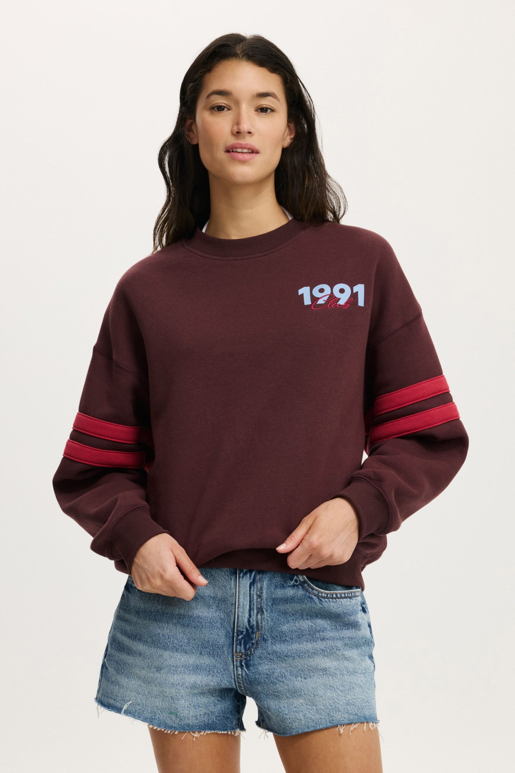 - Side paneled graphic crew