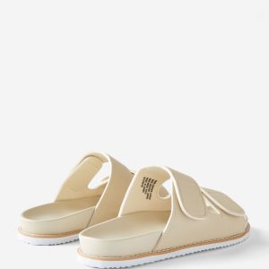 Upper: 90% Polyester, 10% Viscose (Viscose Rayon); Outsole: 100% Ethylene Vinyl Acetate; Lining: 100% Polyester; Trim: 100% Poly Vinyl Chloride (PVC) ; Base: 100% Polyurethane .